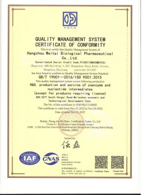 公司导入现代化管理理念,配备先进的生产设备,严格按照IS9001国际质量认证体系,在生产过程中严格执行中间工艺控制、中间产物检测和放行SOP,确保产品符合质量标准。